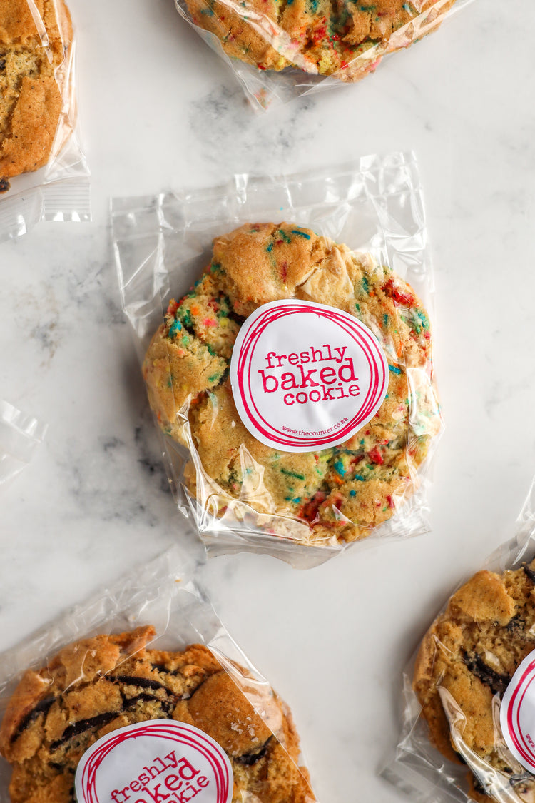 Who doesn't love sprinkles?! We've piled colourful sprinkles into our chewy cookies and added locally produced white chocolate to make them even more delectable. Top with a candle and call every day a birthday.