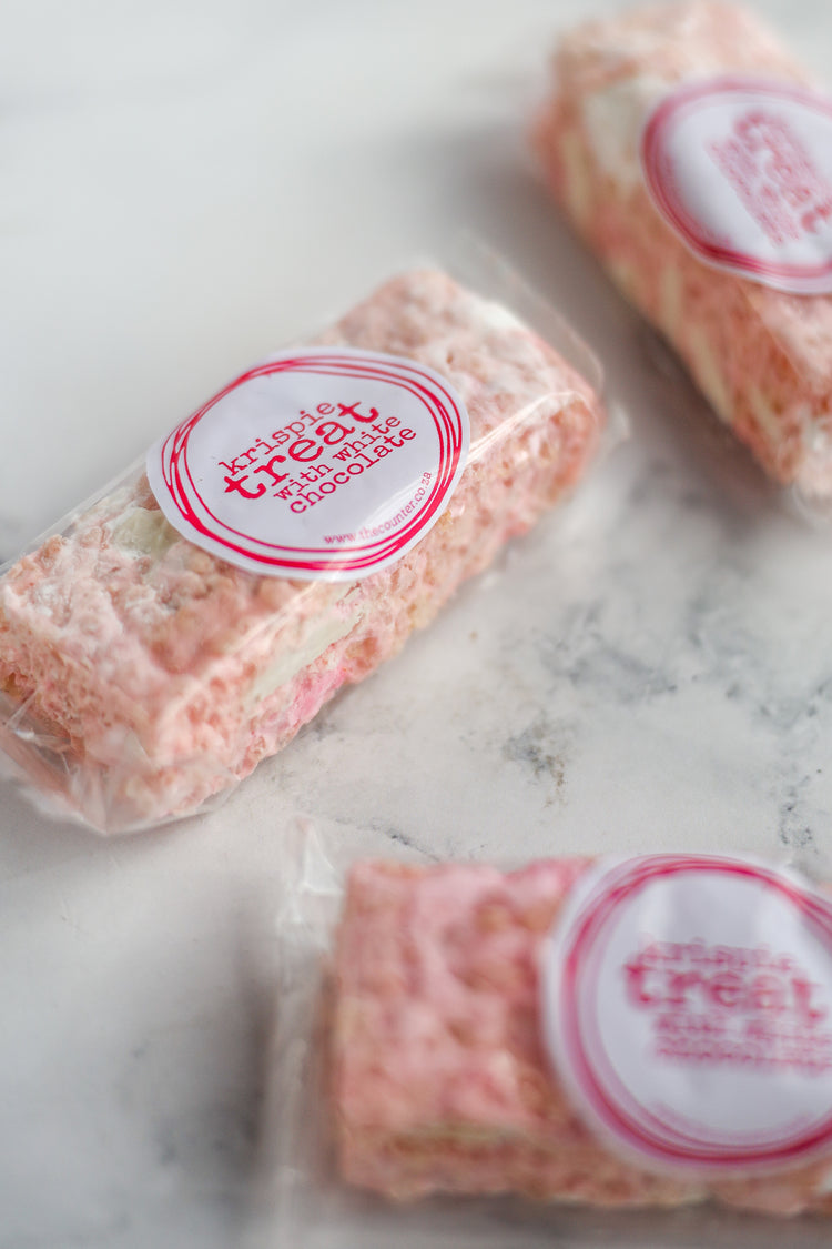 Those old school Rice Krispie Treats your mom used to make for you? Yup - those. But better. Packed with couverture white chocolate drops, they're chewy and creamy at the same time and just the epitome of nostalgia.