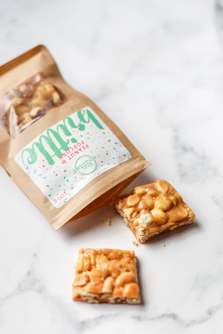 Buttery, crunchy peanut and popcorn brittle that will take you straight back to your childhood. (100g)
