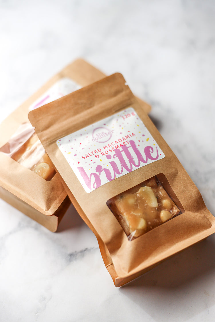 The perfect blend of sweet and salty - our Salted Macadamia and Rosemary Brittle really is that girl. It's chewy and creamy, savoury and sweet, buttery and beyond delicious. A flavour combination that sits perfectly on your tongue...Each batch is finished with flaky Maldon Salt; which just elevates the entire thing, making you want more and more and more.