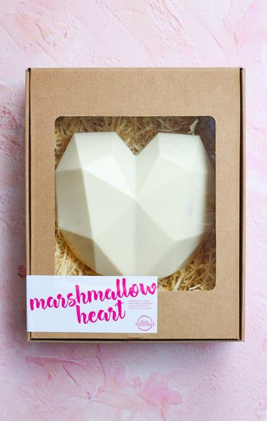 Giant heart shaped cherry marshmallow filled with white chocolate ganache.