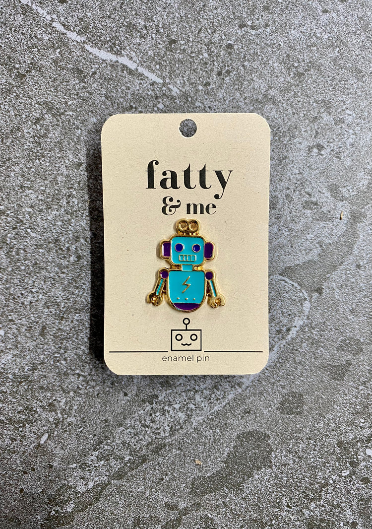 Fatty & Me enamel 'Robot' lapel pin with butterfly clip.